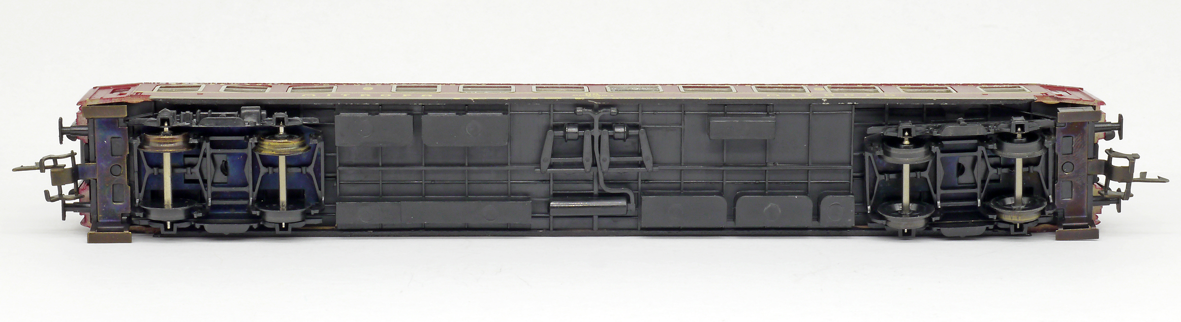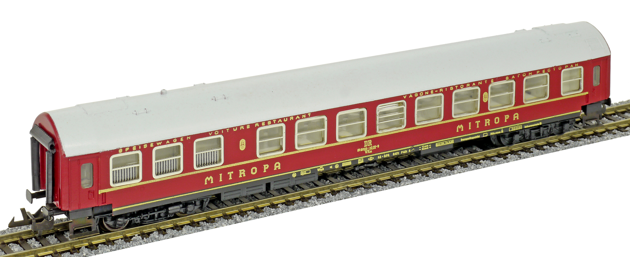 | jídelní vůz červený s šedou střechou „MITROPA“ |
