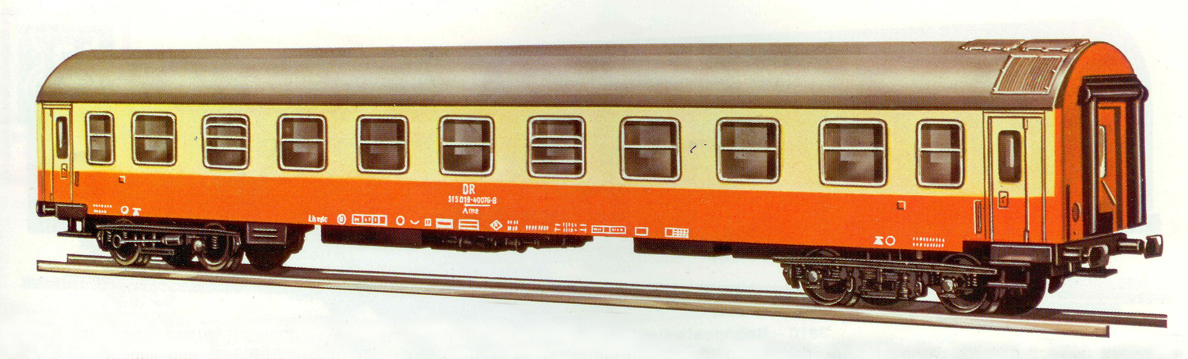 | rychlíkový vůz oranžový-slonová kost s šedou střechou 1. tř. |