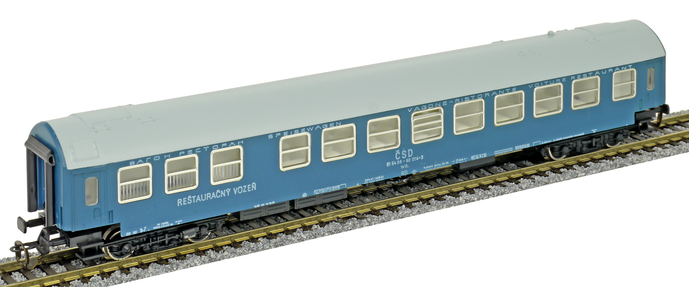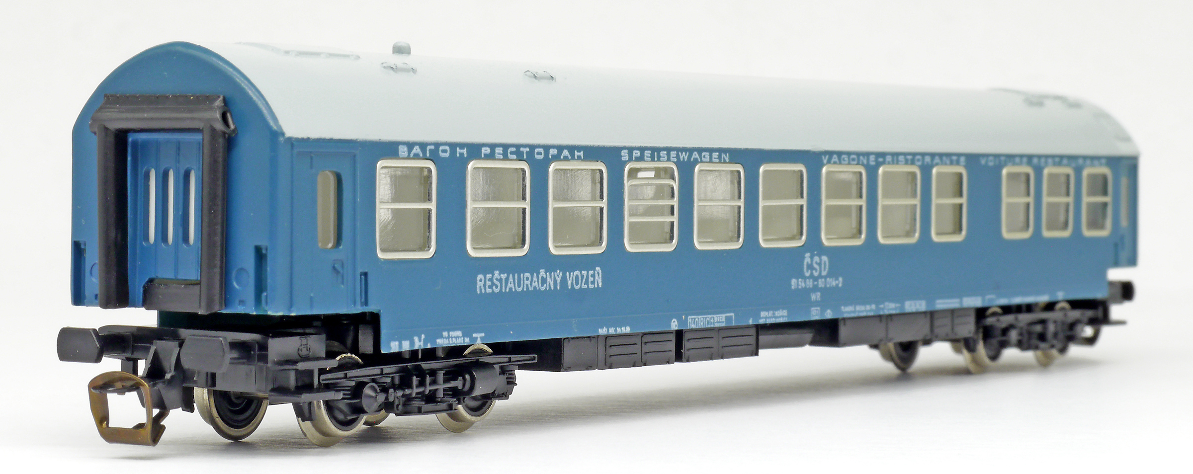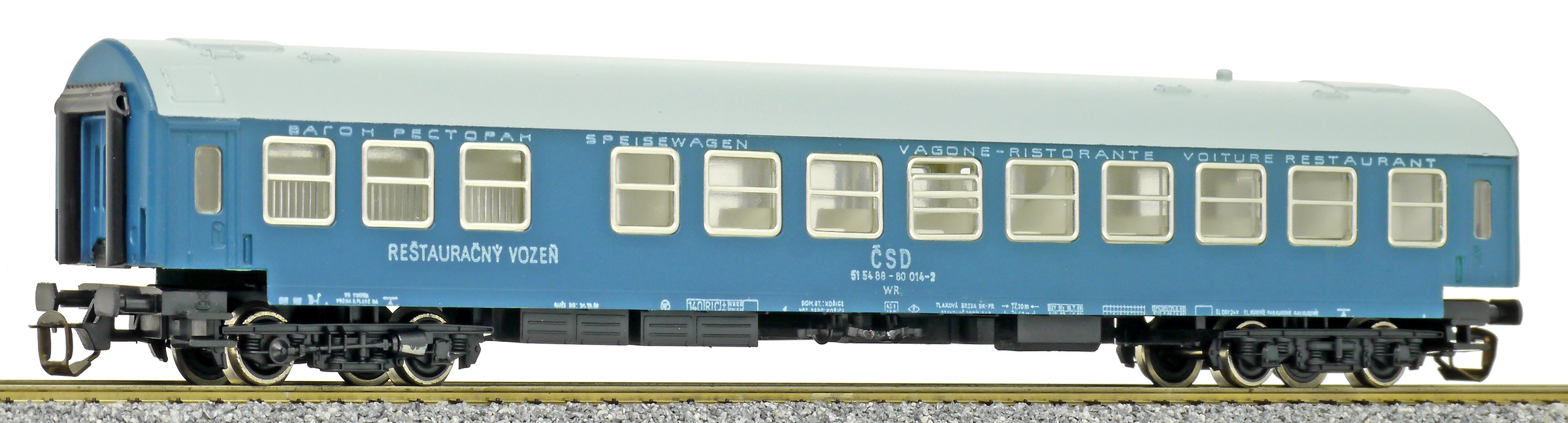 Kód   01455   ze SETu   [Osobní vozy] → [Rychlíkové] → [typ Y] → 01455: jídelní vůz modrý s šedou střechou „Touristenexpress“