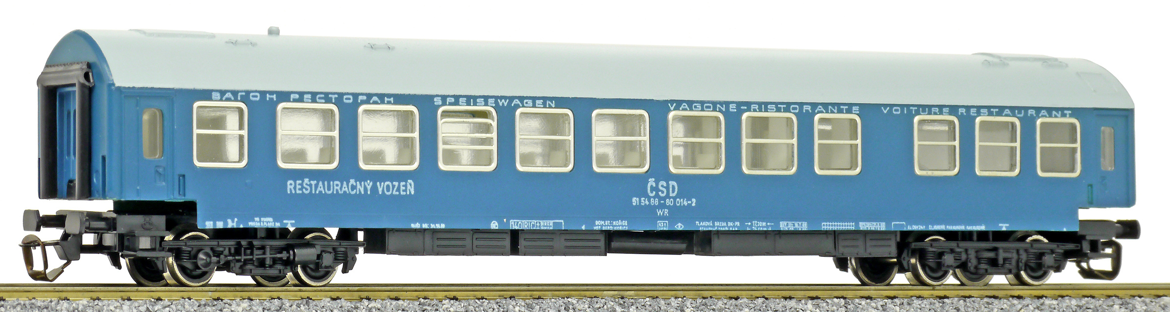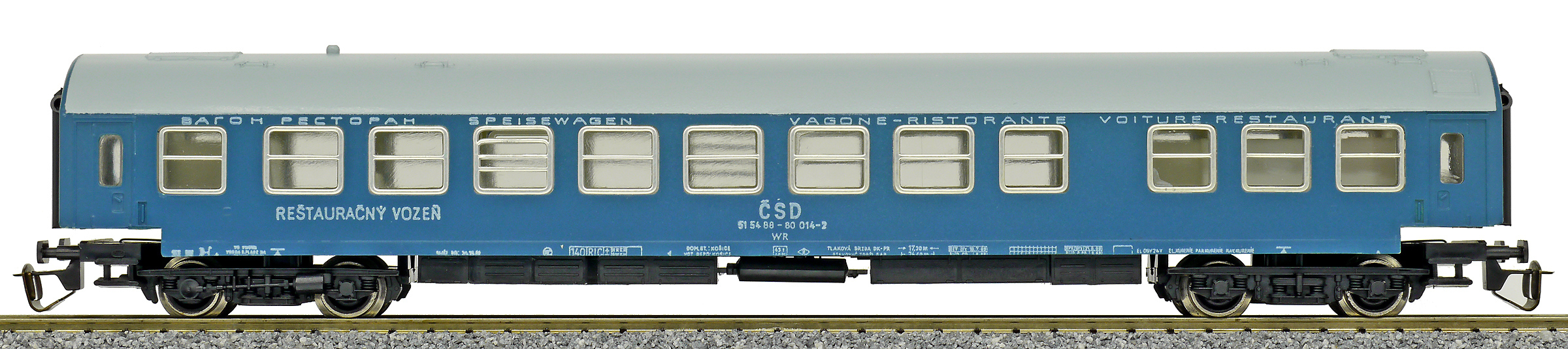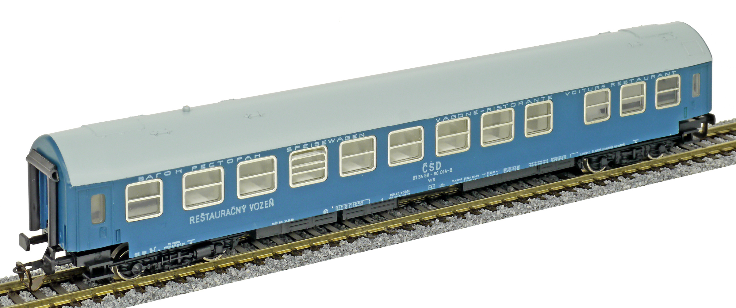 Kód   01455   ze SETu   [Osobní vozy] → [Rychlíkové] → [typ Y] → 01455: jídelní vůz modrý s šedou střechou „Touristenexpress“