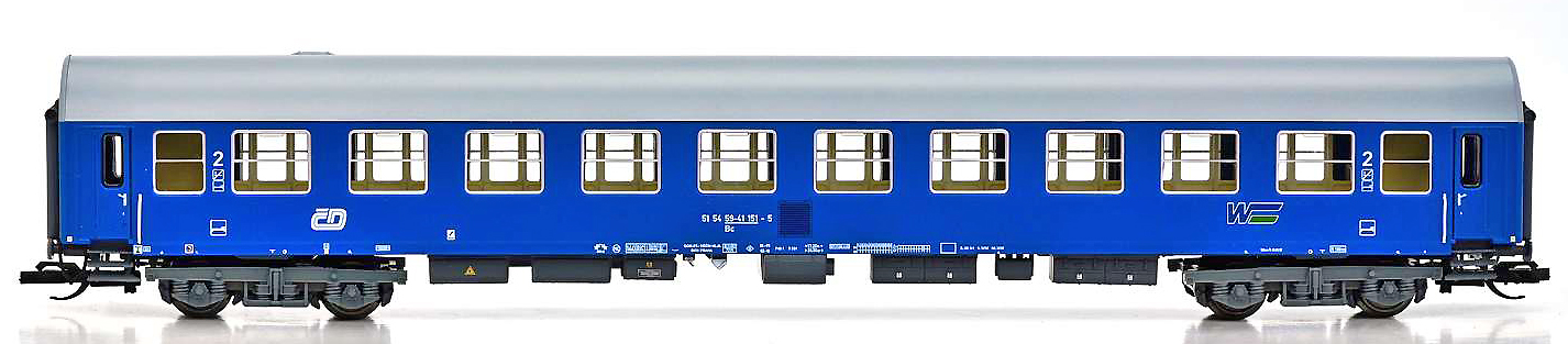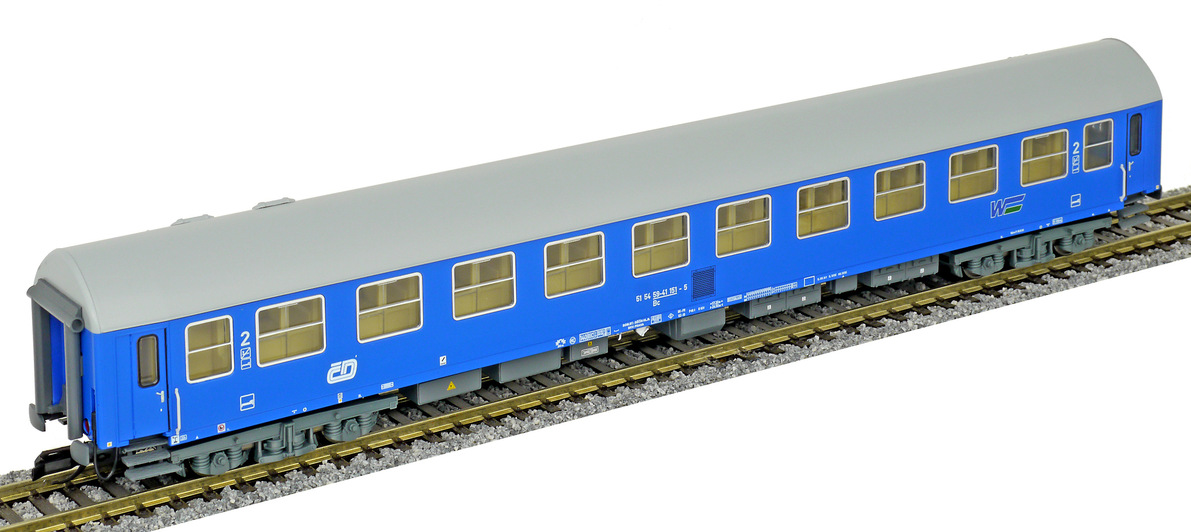 | lehátkový vůz modrý se světle šedou střechou 2. tř. |