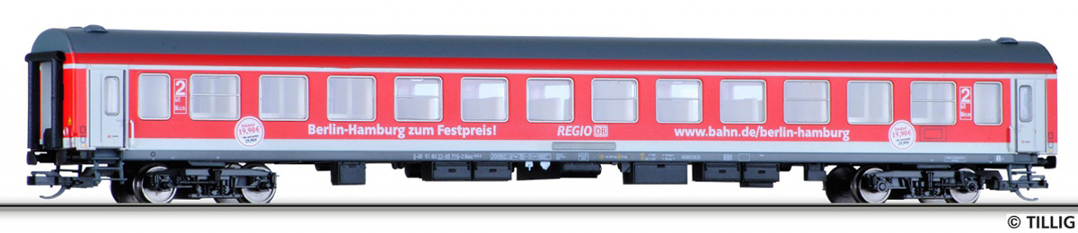 | rychlíkový vůz červený 2. tř. s reklamou „Berlin-Hamburg zum Festpreis!“ |