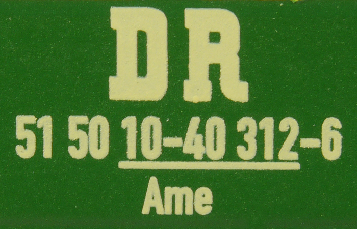 | • 51 50 10-40 312-6 | → | DR - Deutsche Reichsbahn |