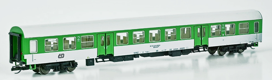 | rychlíkový vůz zelený-bílý se světle šedou střechou 2. tř. |