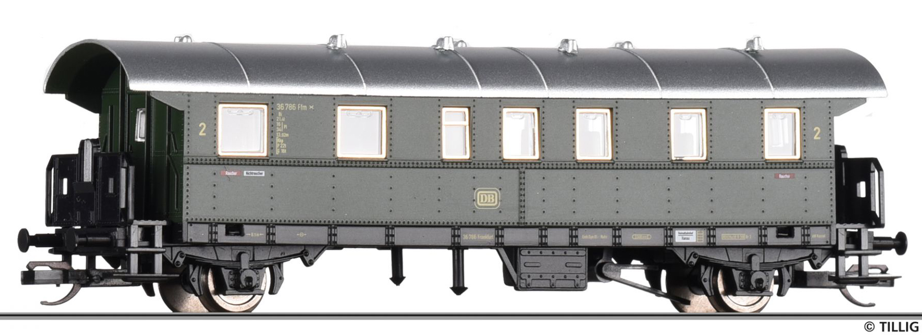 | osobní vůz zelený se stříbřitou střechou 2. tř. |
