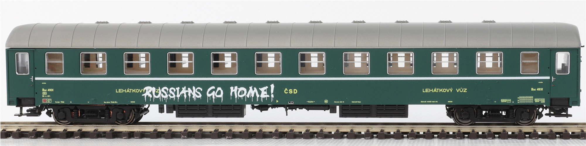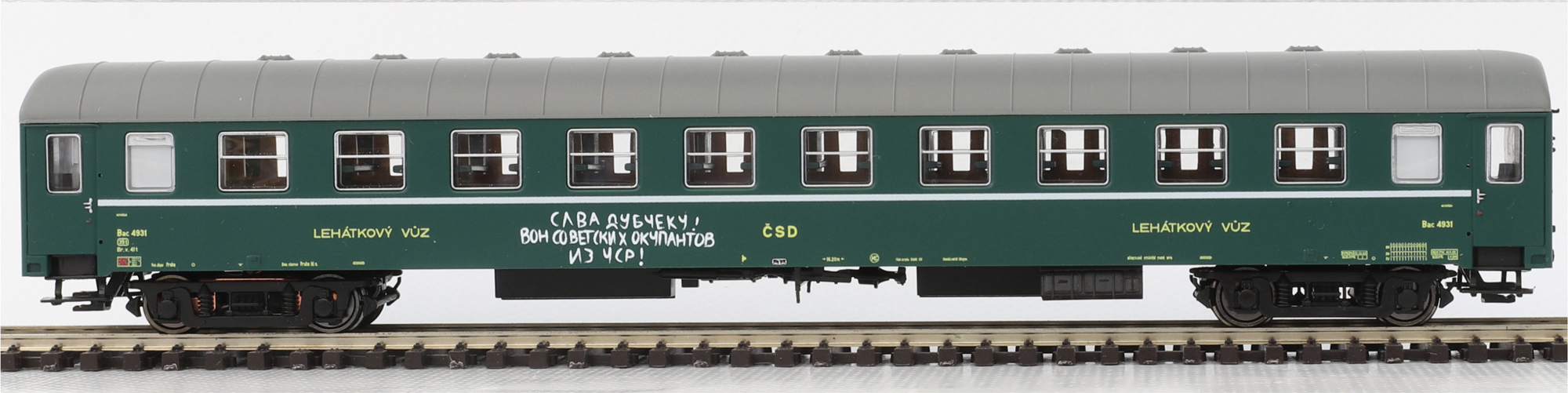 | lehátkový vůz zelený s šedou střechou 2. tř., Praha |