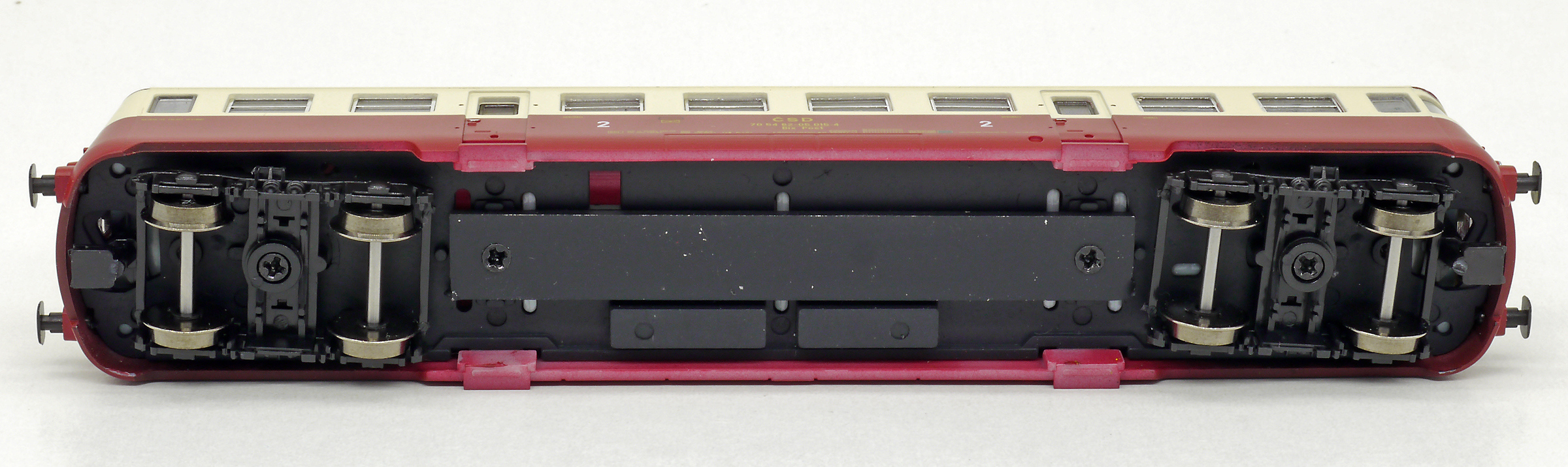 | osobní vůz červený-slonová kost s šedou střechou s poštovním oddílem 2. tř. |