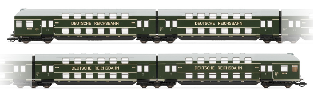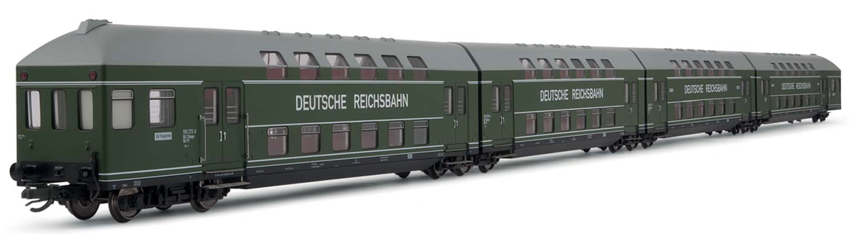 Kód   01355  [Osobní vozy] → [Patrové] → [DB 13] → 01355: zelený s šedou střechou, 4-dílná souprava
