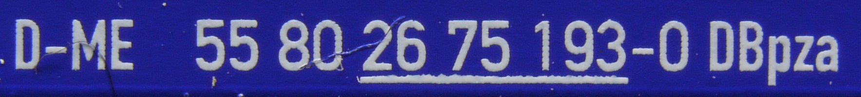 Číslo   55 80 26-75 193-0  Kontrolní číslice je v pořádku  Tovární číslo