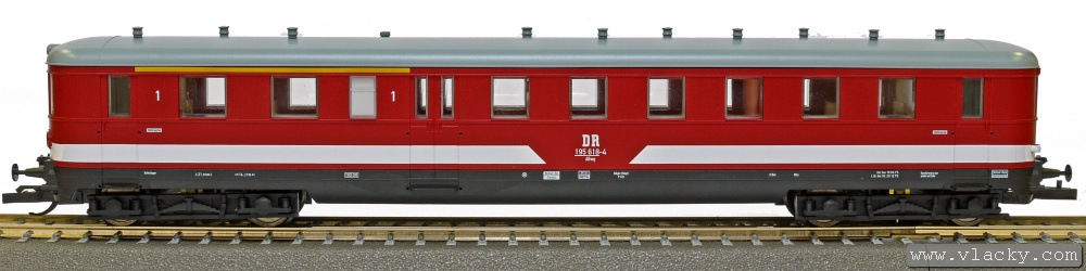 Kód   13300  [Osobní vozy] → [Ostatní] → 13300: červený s šedou střechou a černým pojezdem 1./2. tř.