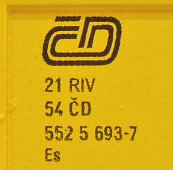 | • 21 54 552 5 693-7 | → | nákladní, nezávislé nápravy, pevný rozchod, ve vlastnictví železniční správy, RIV, PPV |