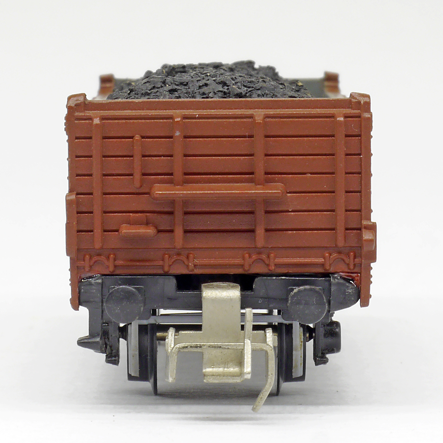 otevřený nákladní vůz červenohnědý ložený uhlím