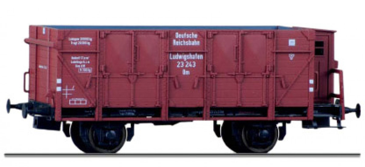 | otevřený nákladní vůz červenohnědý s brzdařskou budkou |