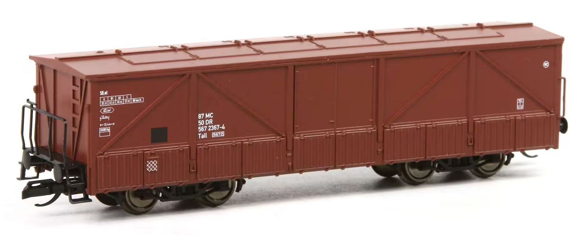 | nákladní vysokostěnný vůz červenohnědý se plochým zakrytím |
