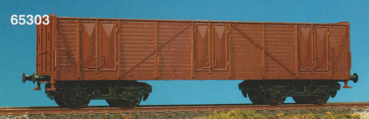Popis   vysokostěnný nákladní vůz červenohnědý, černý rám a podvozky