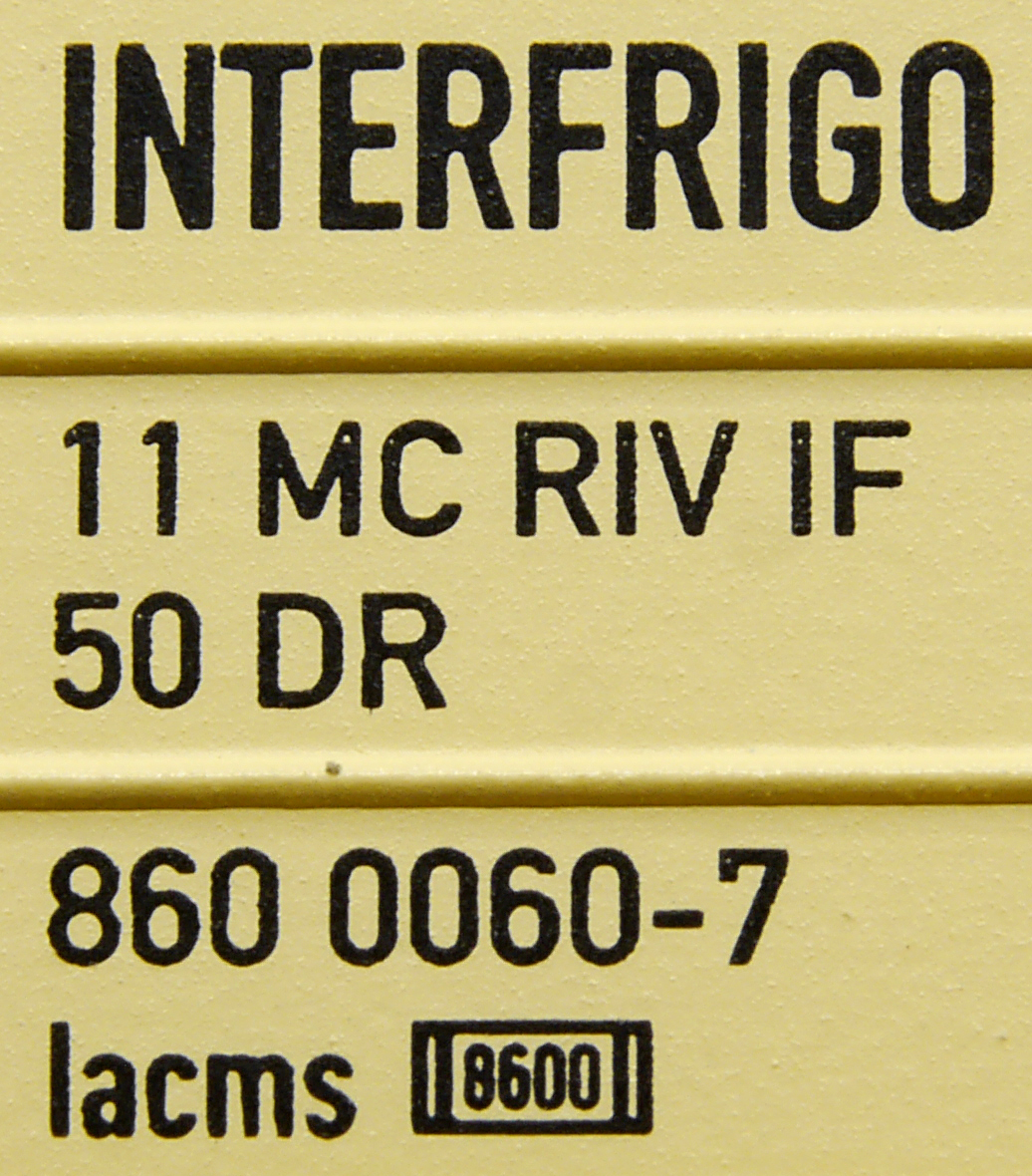 | • 11 50 860 0060-7 | → | nákladní, s podvozky, pevný rozchod, ve vlastnictví železniční správy, RIV, EUROP/IF |