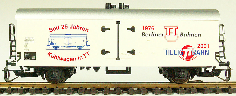 nákladní chladící vůz bílý se stříbřitou střechou střechou „25 Jahre Kühlwagen in TT“