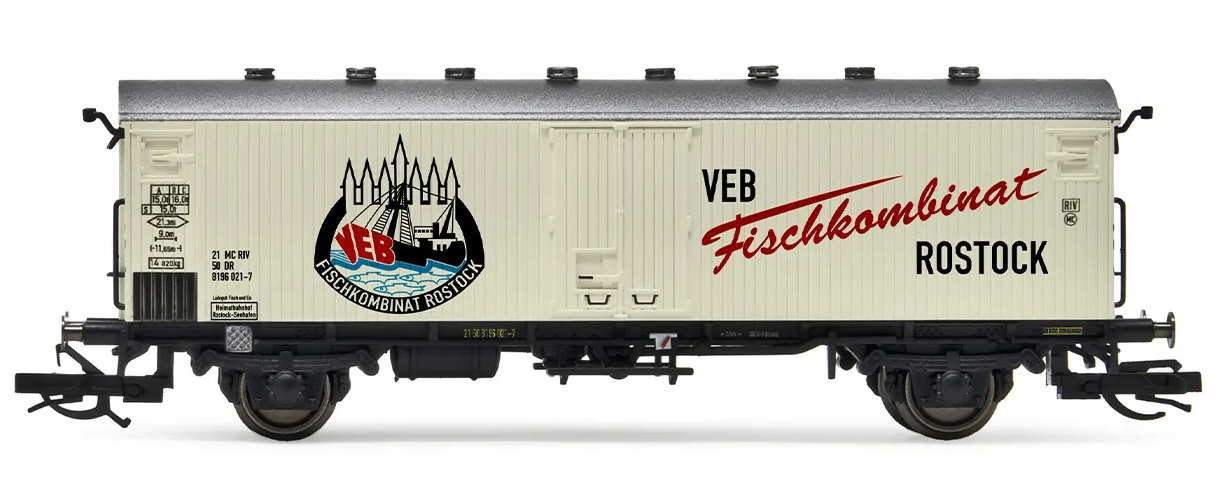 | chladící krytý nákladní vůz krémový se stříbřitou střechou „VEB Fischkombinat Rostock“ |