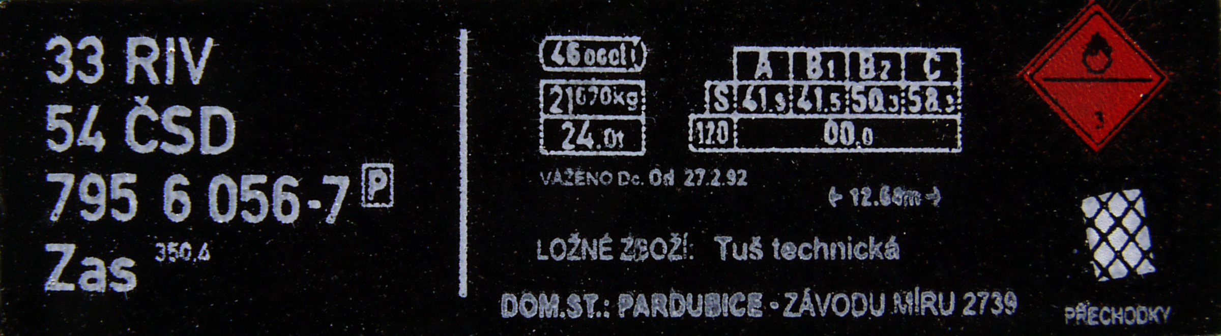 | • 33 54 795 6 056-7 | → | ČSD - Československé státní dráhy |