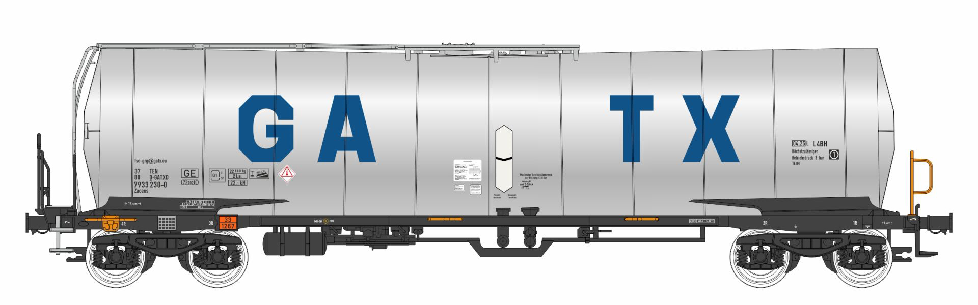 | kotlový vůz stříbrný s logem „GATX“ |