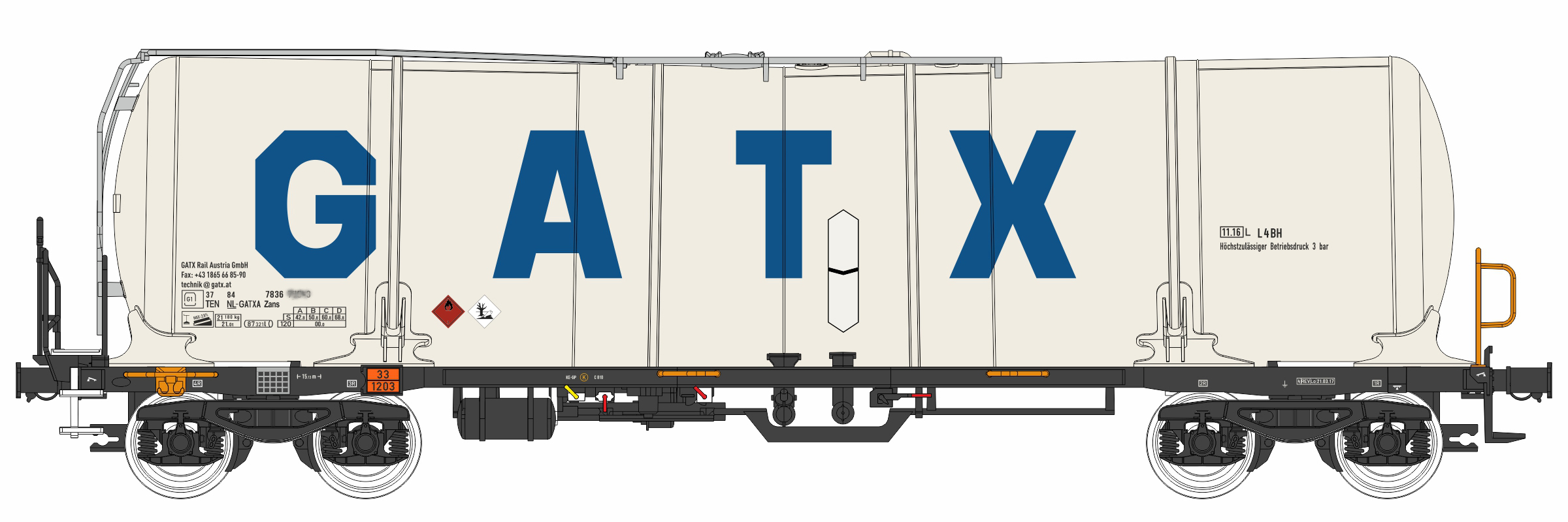 | kotlový vůz bílý s logem „GATX“ |