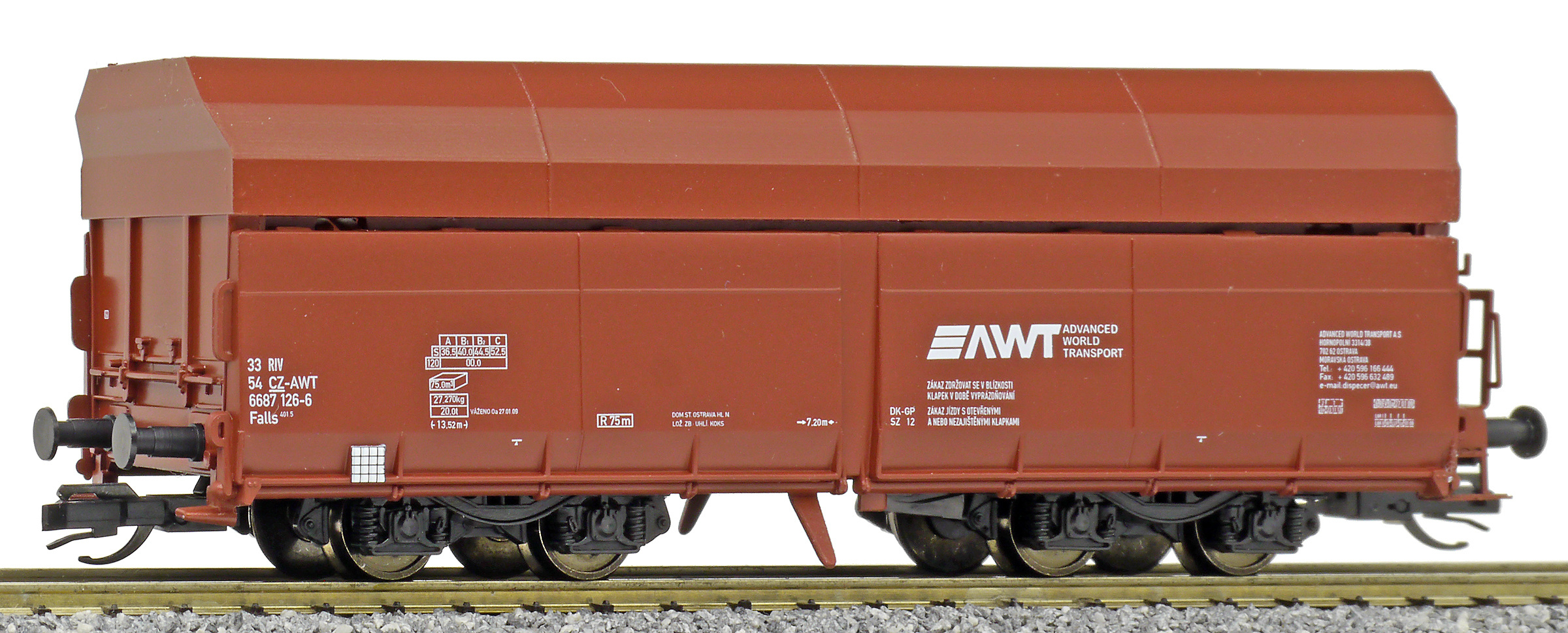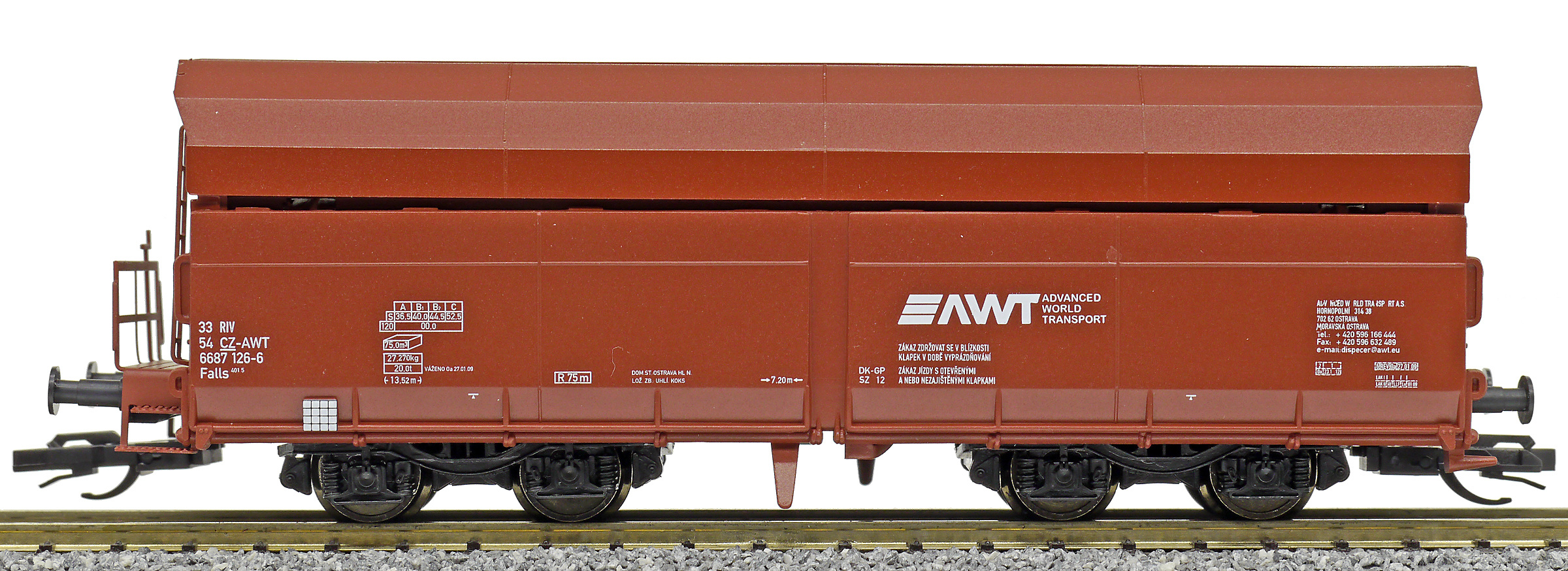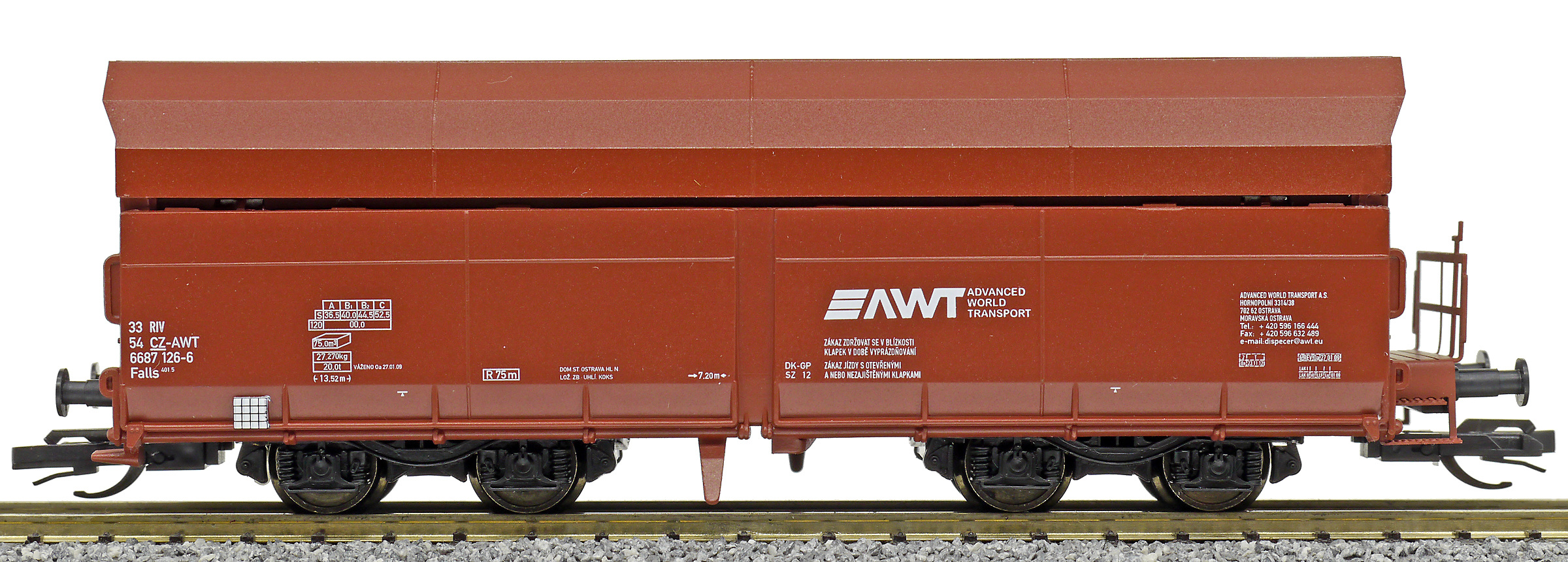 | nákladní samovýsypný vůz červenohnědý s logem „AWT“ |