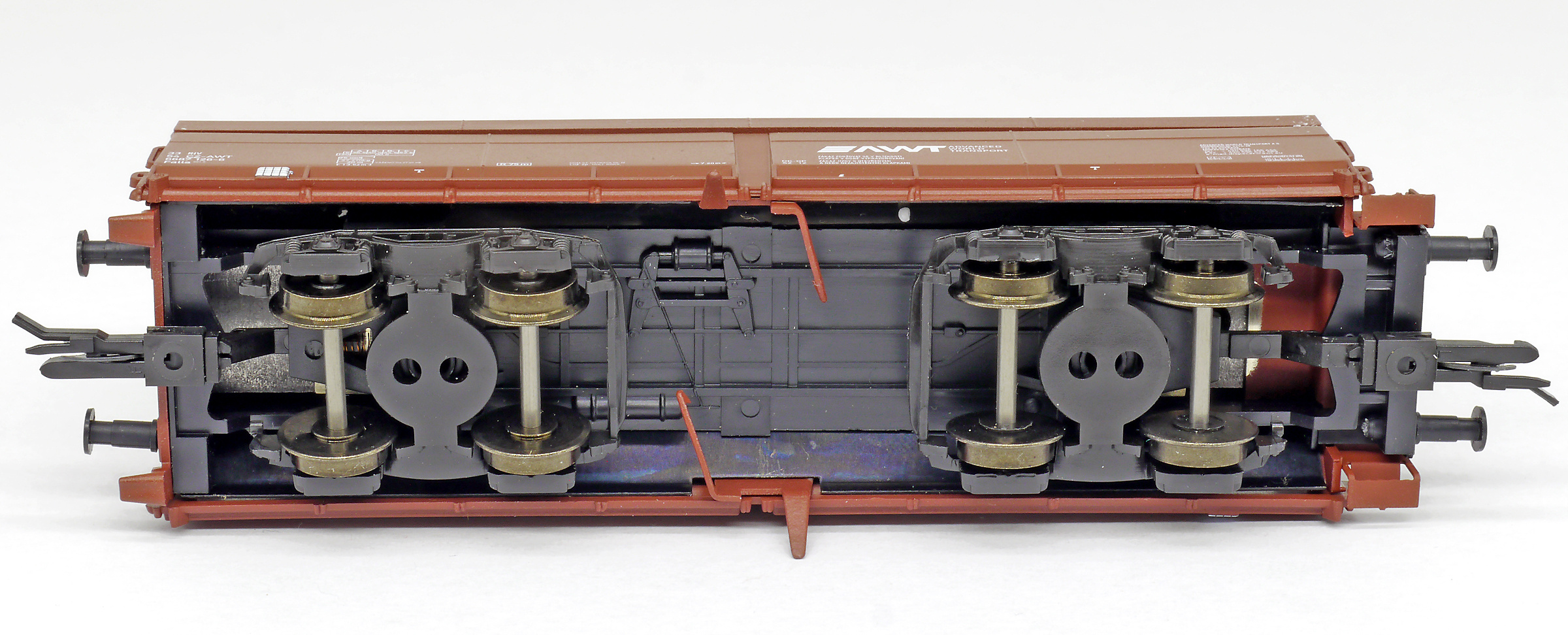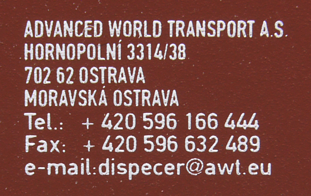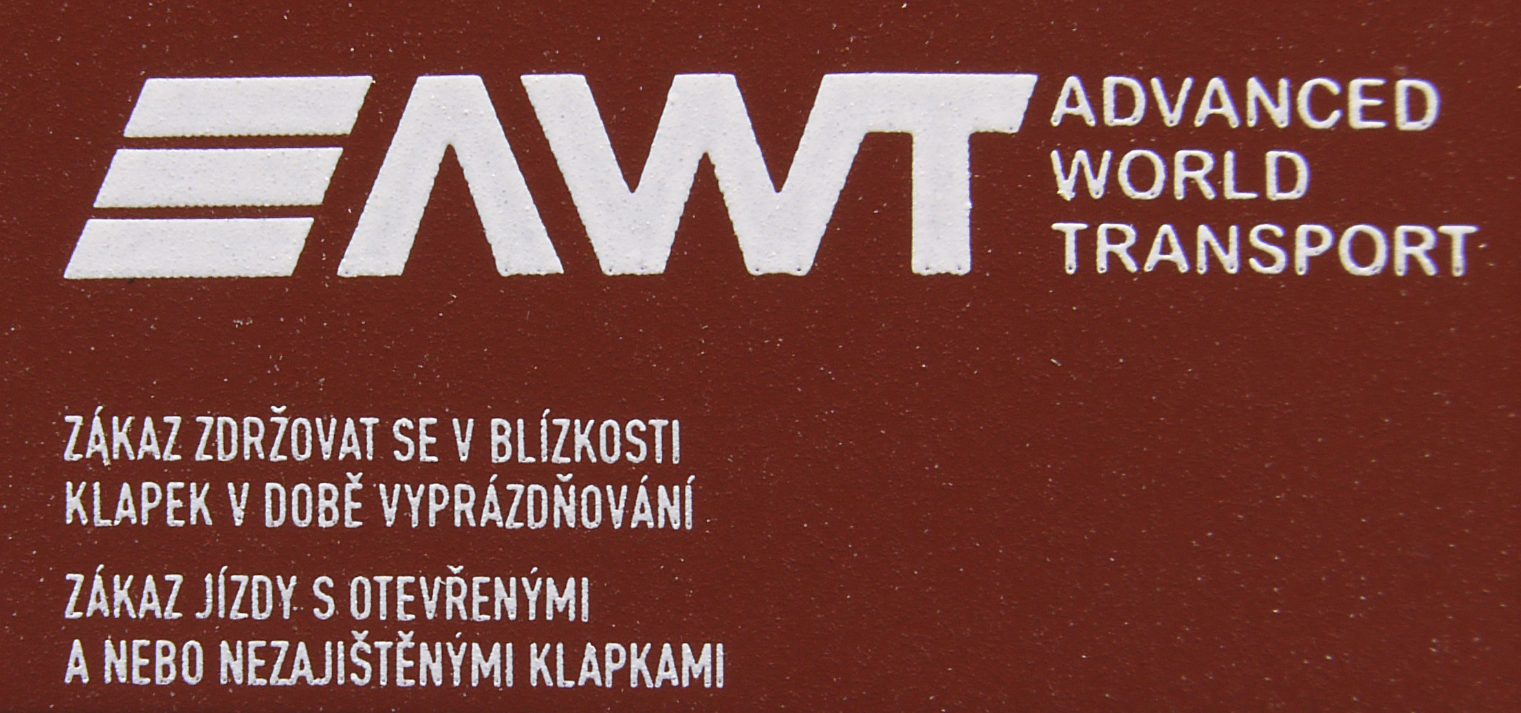 | nákladní samovýsypný vůz červenohnědý s logem „AWT“ |