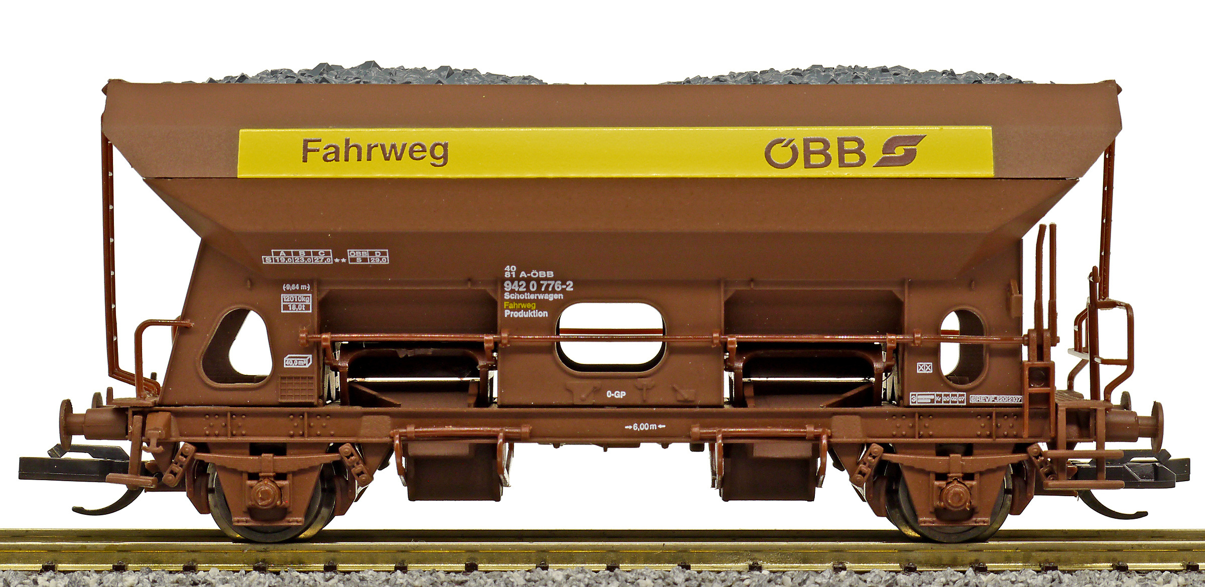 | nákladní samovýsypný vůz hnědý s nákladem „Fahrweg“ |