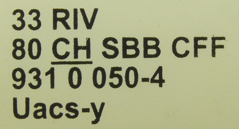 | • 33 80 931 0 050-4 | → | nákladní, s podvozky, pevný rozchod, soukromý vůz, RIV, PPV |