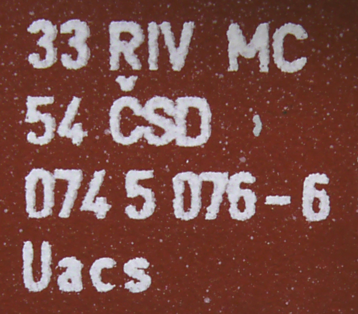 | • 33 54 074 5 076-6 | → | ČSD - Československé státní dráhy |