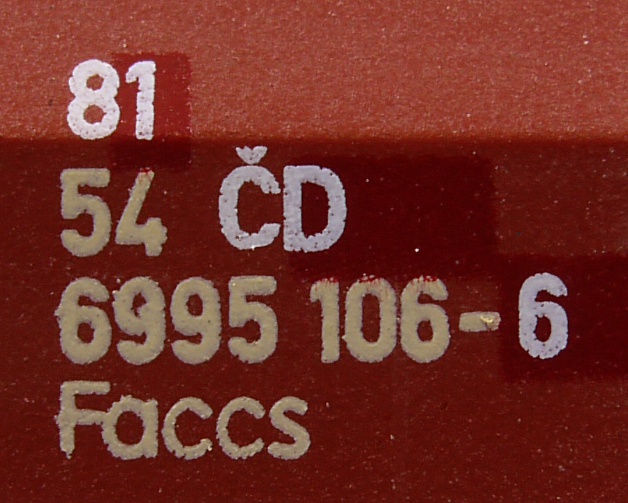 | • 81 54 6995 106-6 | → | nákladní, s podvozky, ve vlastnictví železniční správy, pro mezinárodní dopravu dle zvláštních umluv |