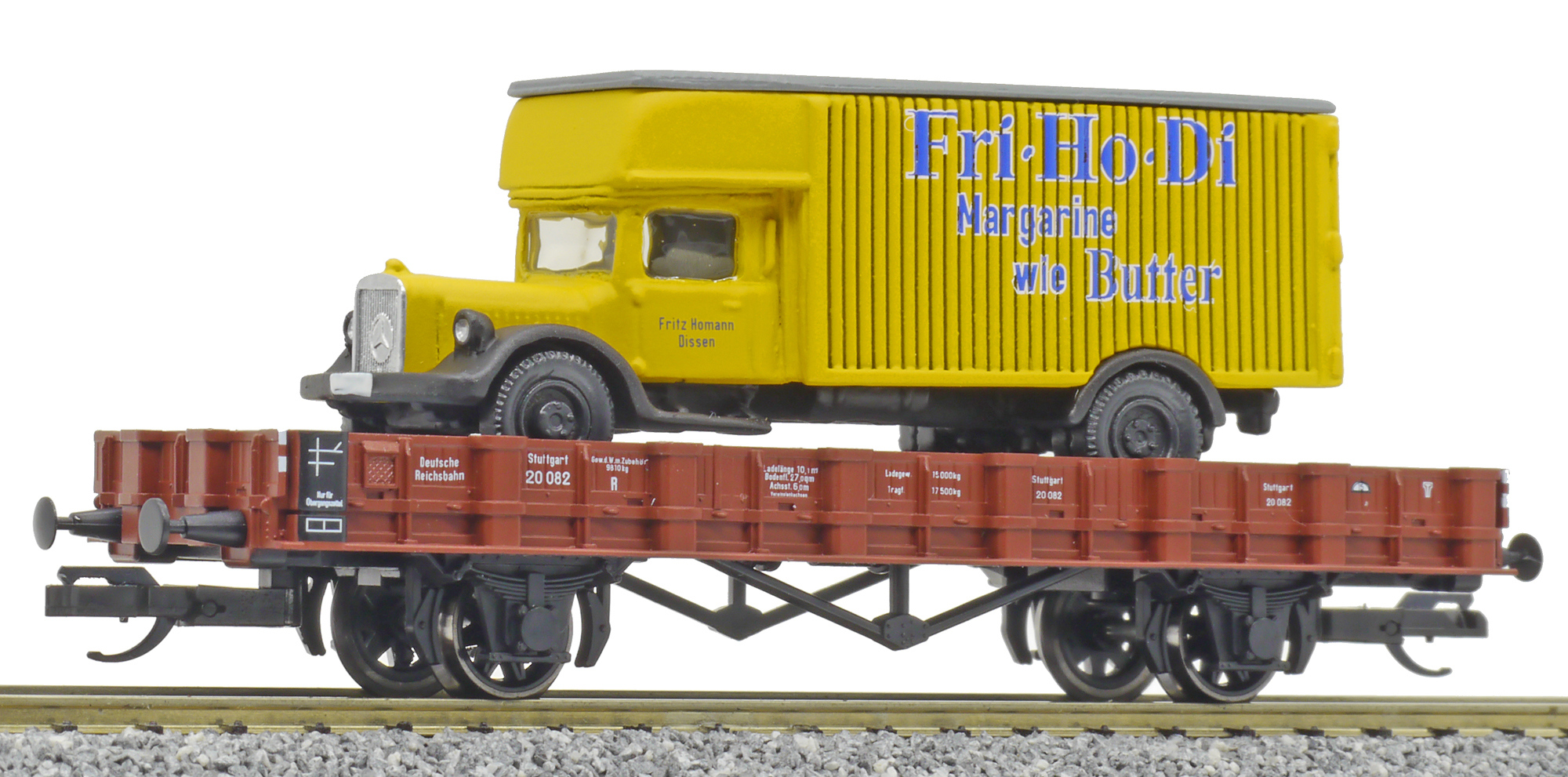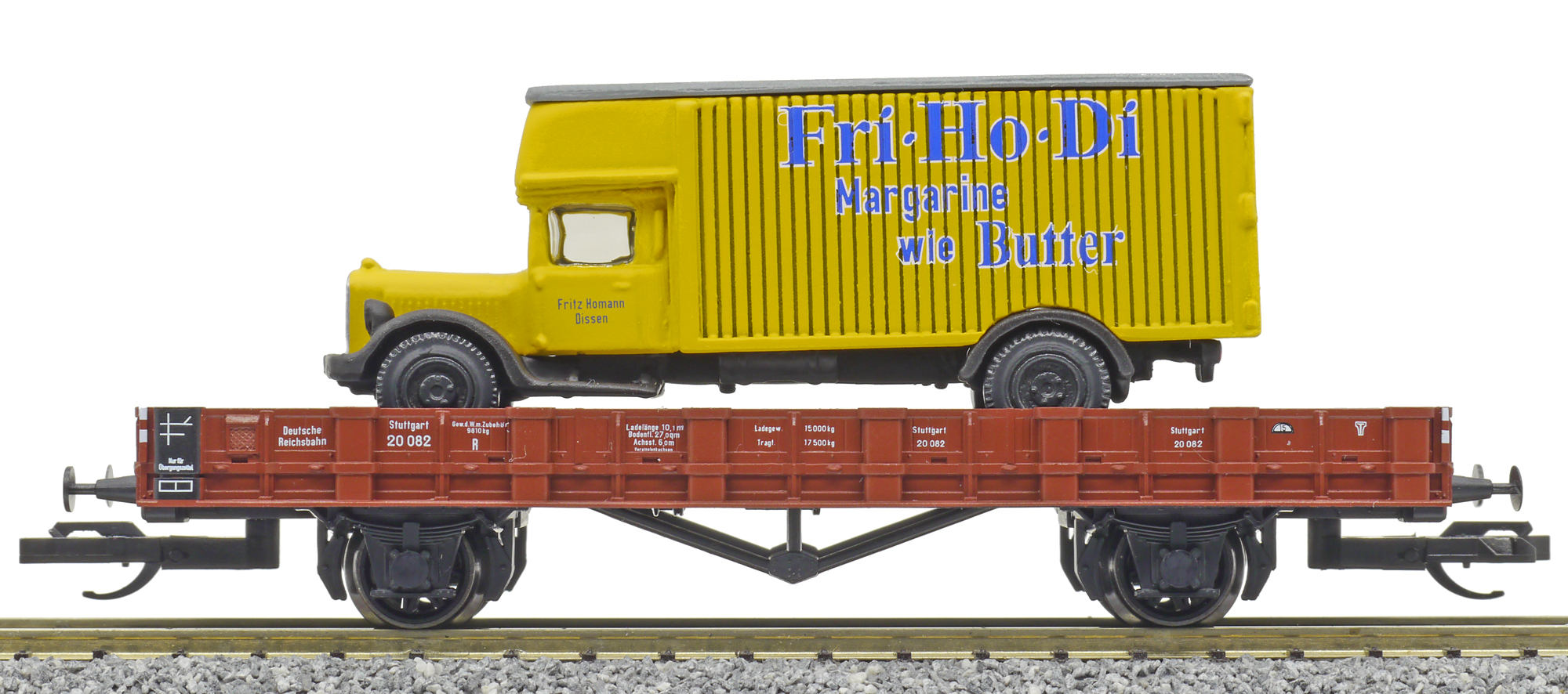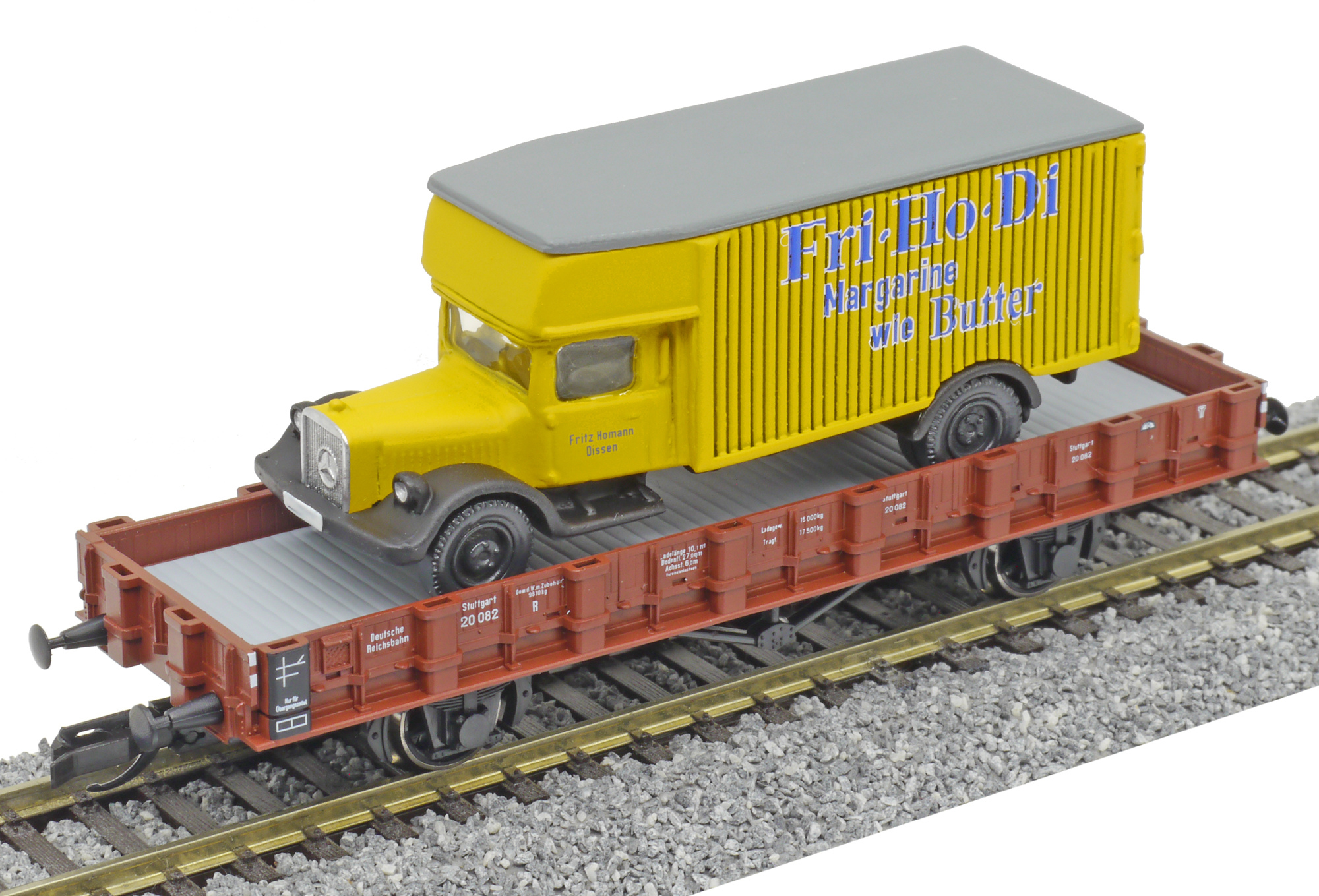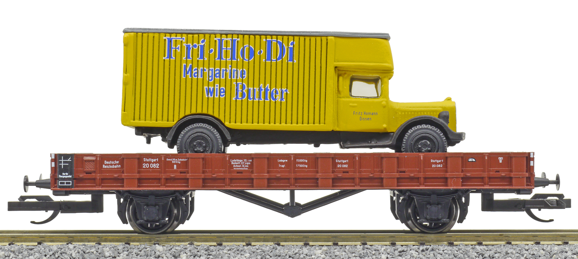 | nízkostěnný vůz červenohnědý s nákladním vozem „Homann“ |