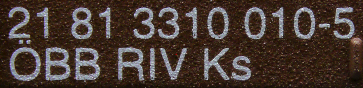 | • 21 81 3310 010-5 | → | nákladní, nezávislé nápravy, pevný rozchod, ve vlastnictví železniční správy, RIV, PPV |