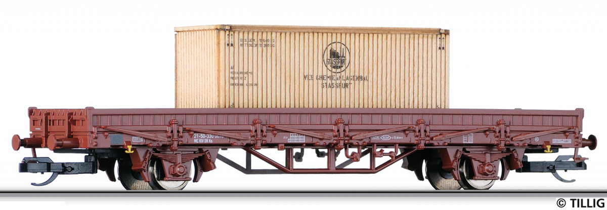 | nízkostěnný nákladní vůz červenohnědý s nákladem bedny „VEB Chemieanlagenbau Stassfurt“ |