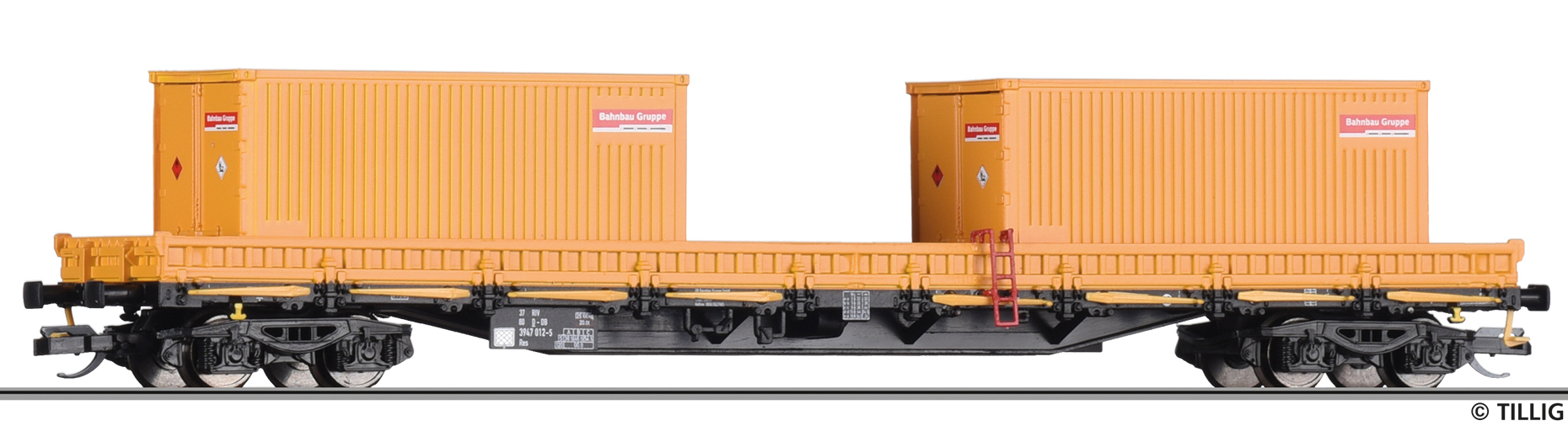 | nízkostěnný nákladní vůz do pracovního vlaku se dvěma kontejnery 20' |