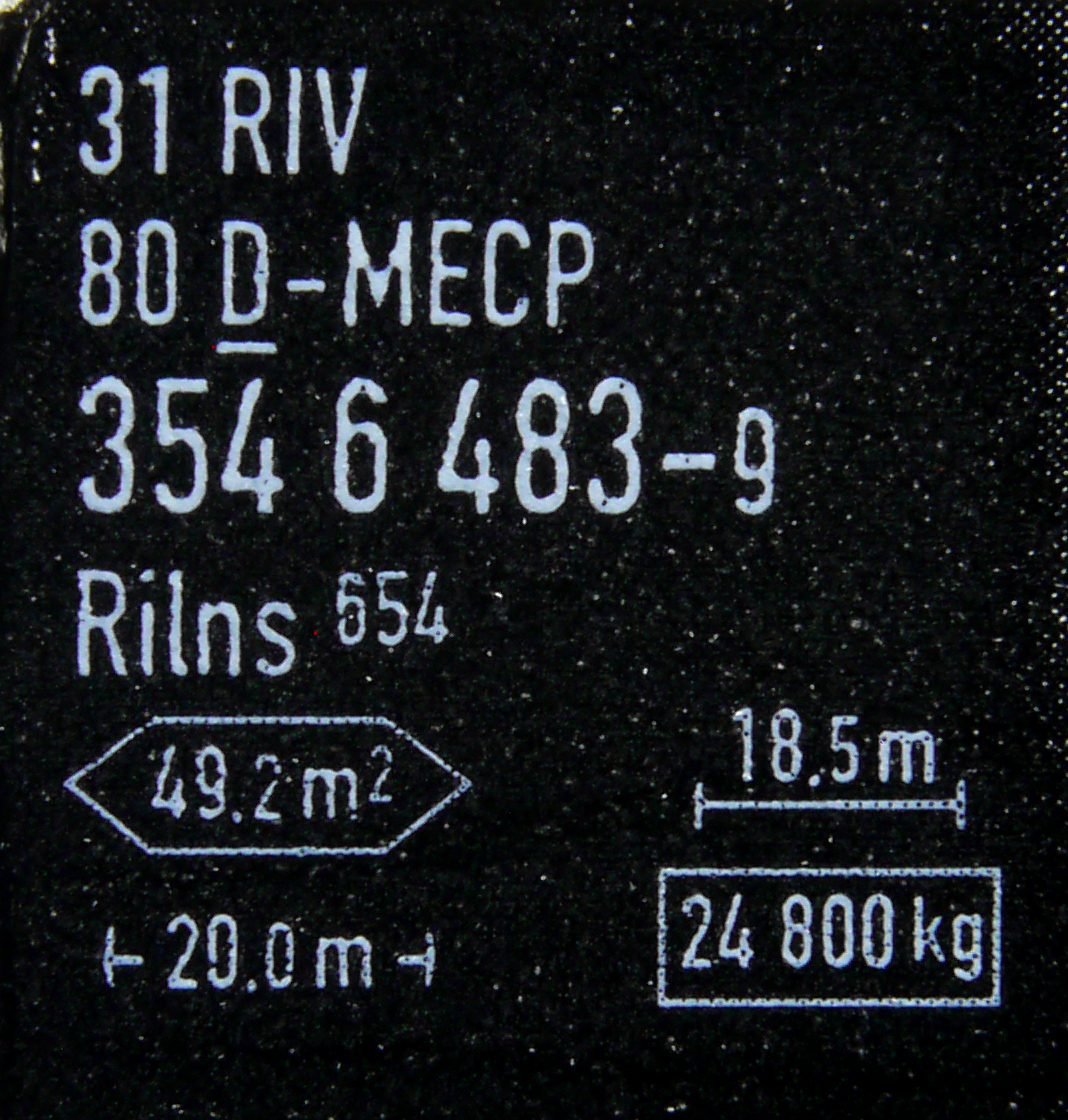 | • 31 80 354 6 483-9 | → | nákladní, s podvozky, pevný rozchod, ve vlastnictví železniční správy, RIV, PPV |