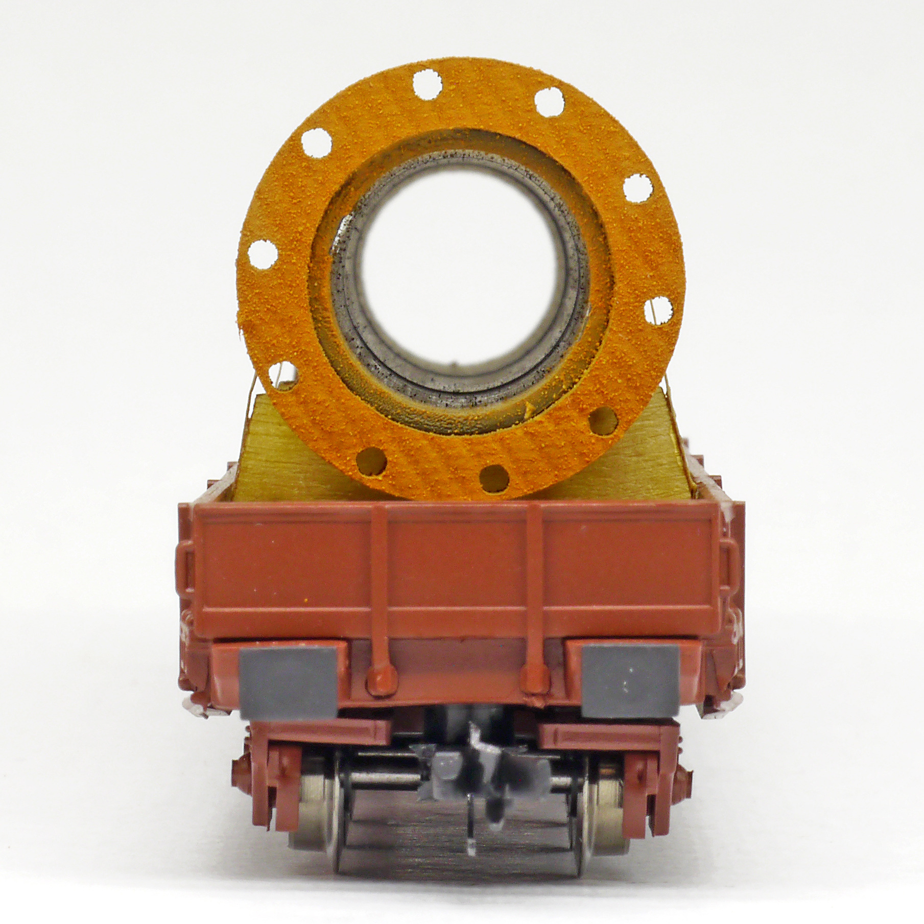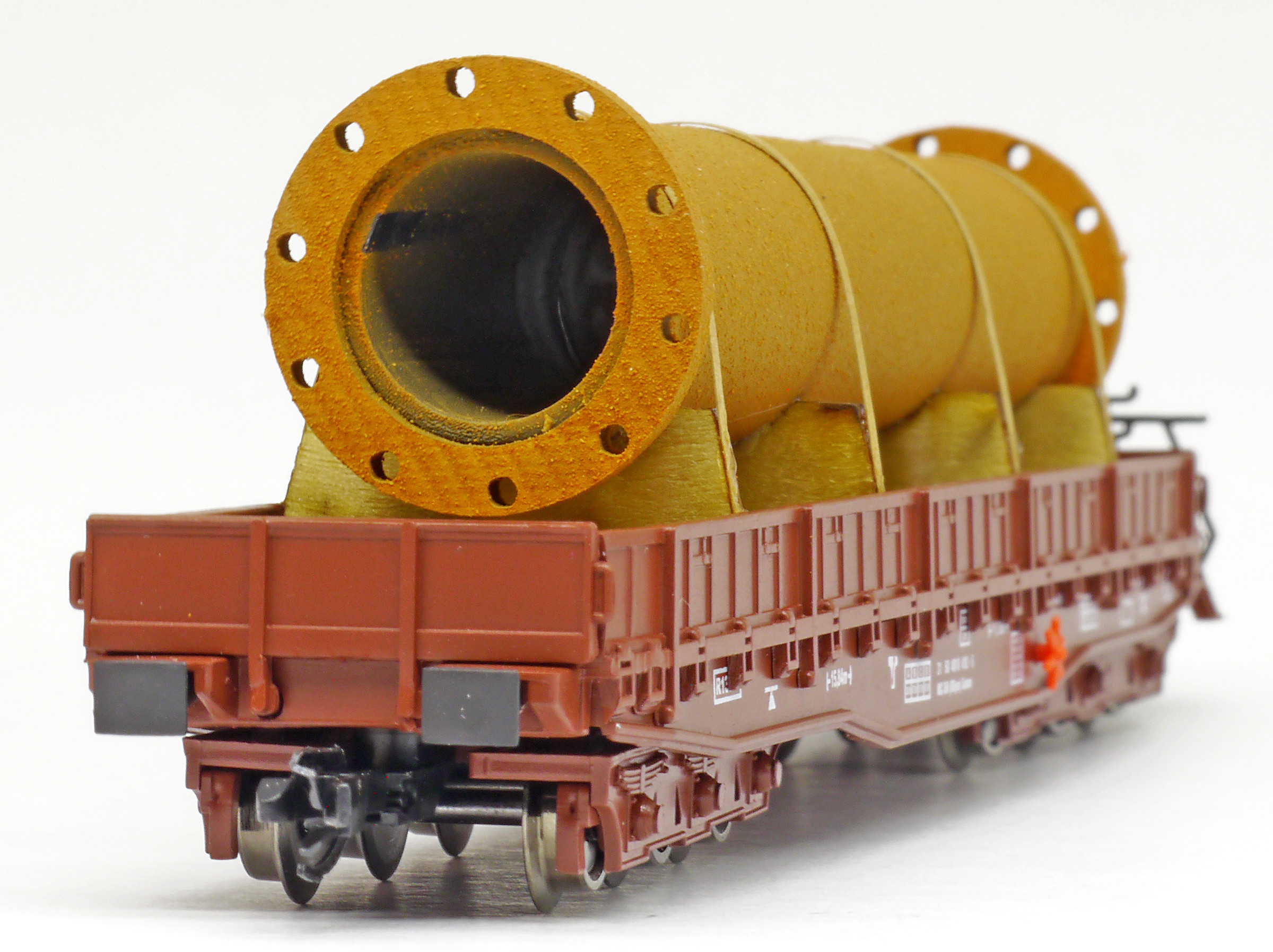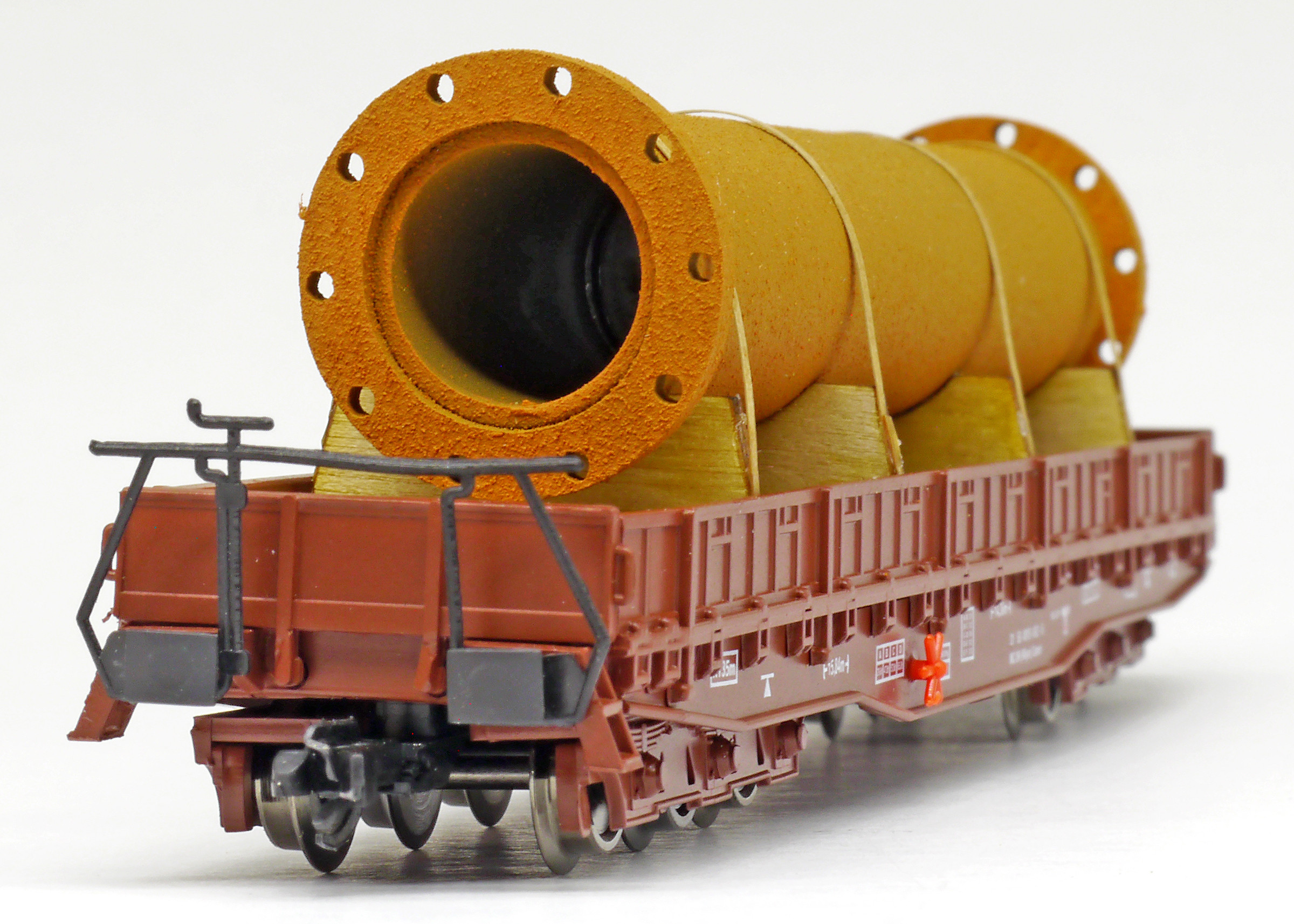| nízkostěnný nákladní vůz červenohnědý s nákladem přírubové trubky |