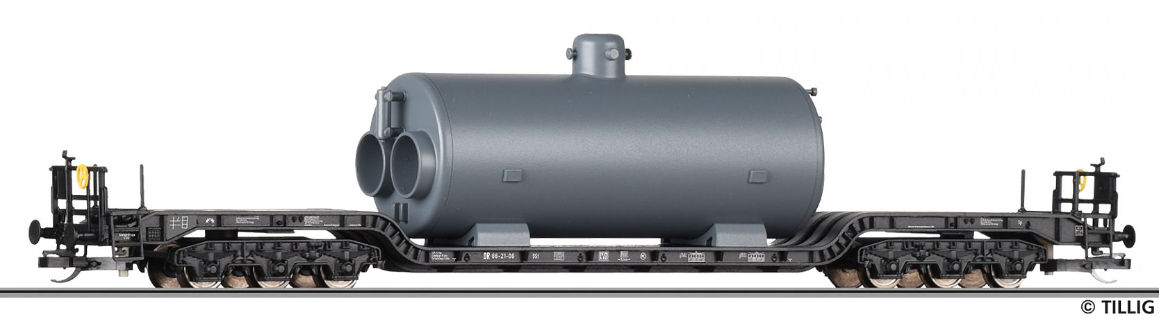 | hlubinový nákladní vůz černý s nákladem parního kotle |