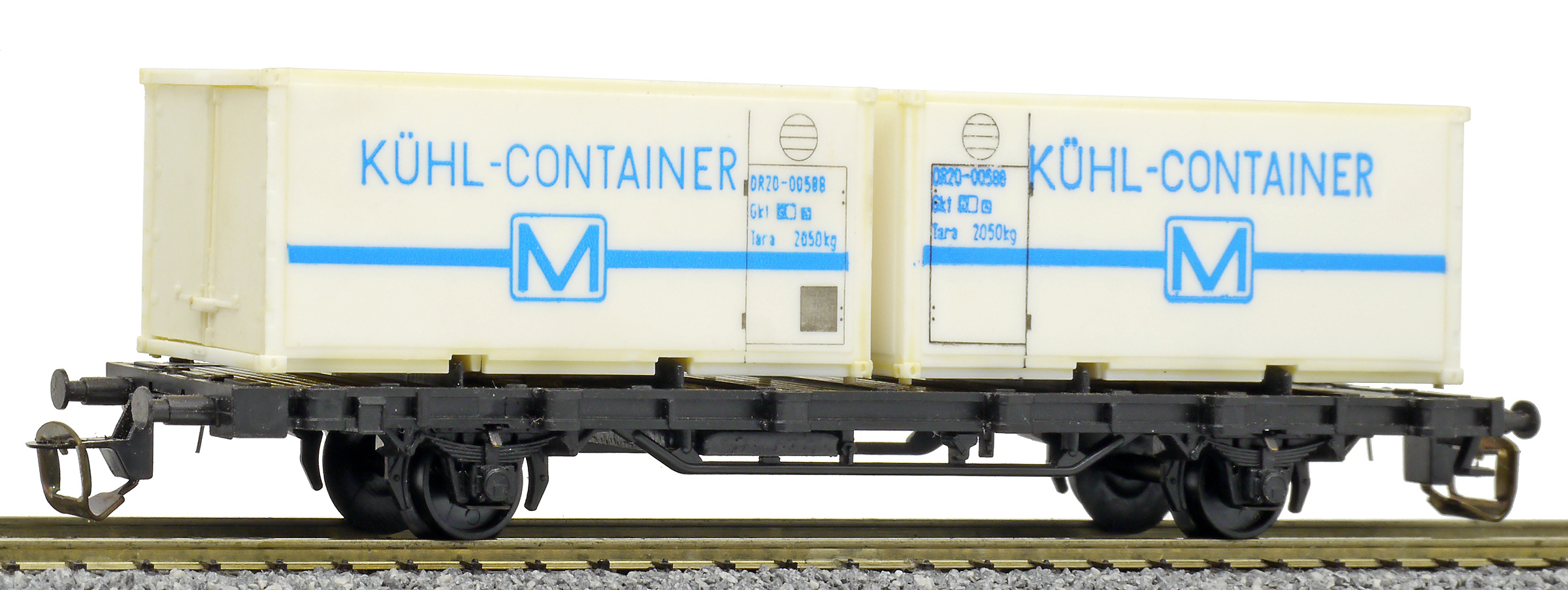 | nákladní plošinový vůz černý se dvěma 20' kontejnery „KÜHL-CONTAINER“ |