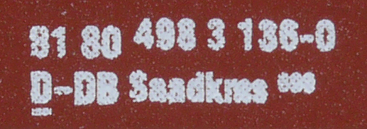 | • 81 80 498 3 136-0 | → | nákladní, s podvozky, ve vlastnictví železniční správy, pro mezinárodní dopravu dle zvláštních umluv |