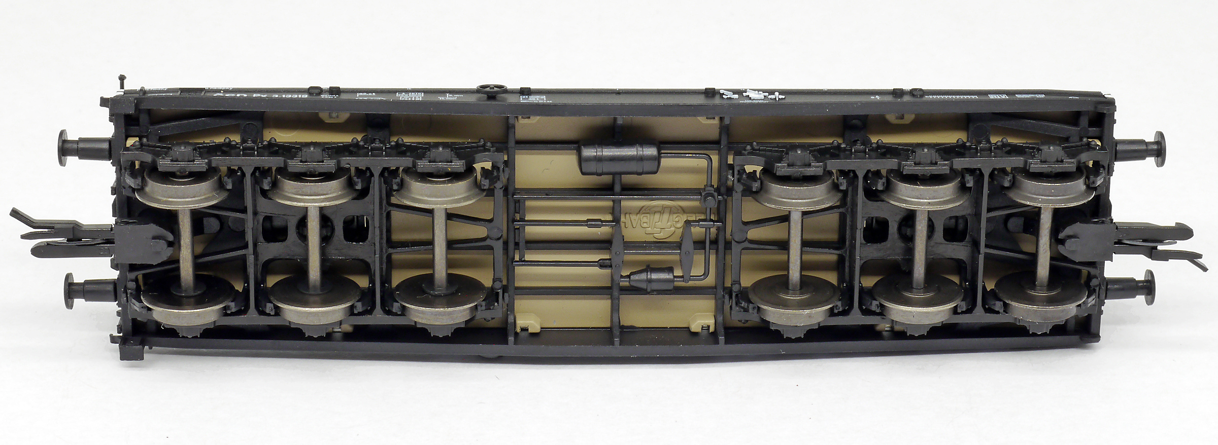 Kód   15621  [Nákladní vozy] → [Nízkostěnné] → [6-osé plošinové] → 15621: černý s klanicemi