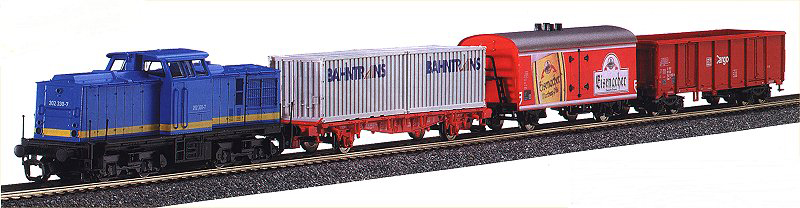 Kód   01203  [Soupravy] → [S lokomotivou] → 01203: digitální set lokomotivy BR 218 a tří nákladních vozů