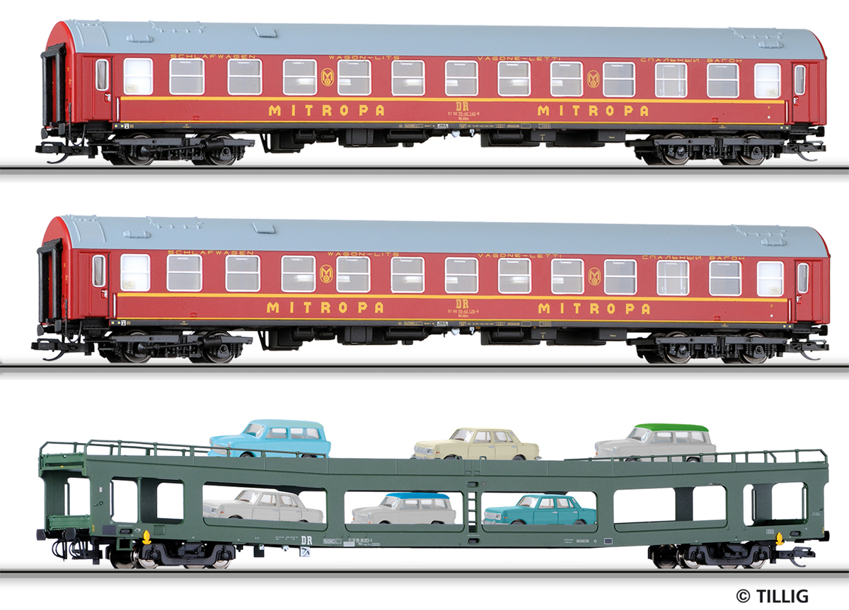 lůžkový vůz červený s šedou střechou „MITROPA“