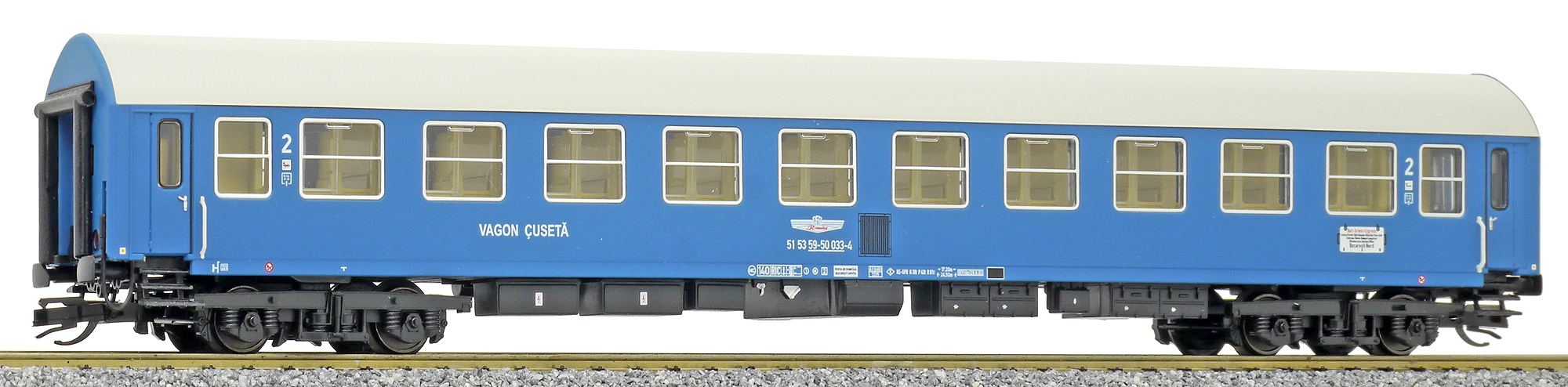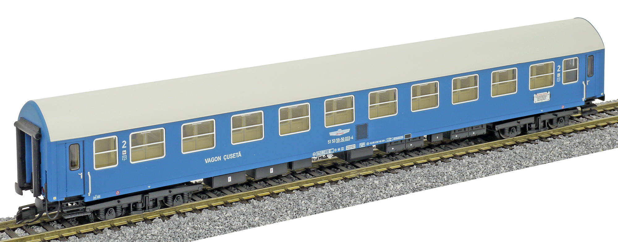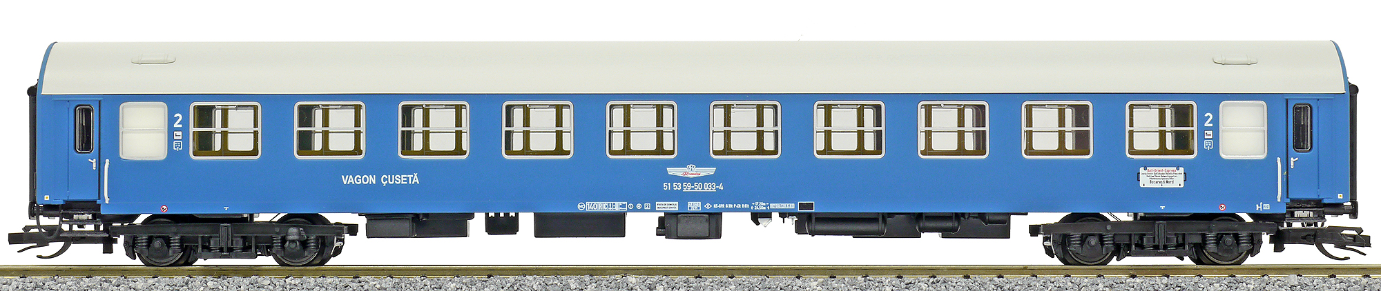 lehátkový vůz modrý s šedou střechou 2. tř.