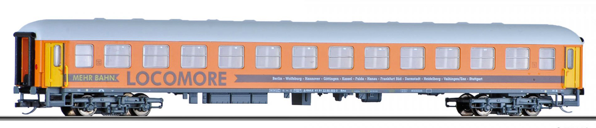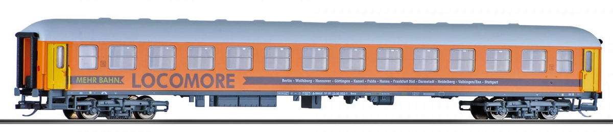 | rychlíkový vůz oranžový s šedou střechou „LOCOMORE“ 2. tř. |