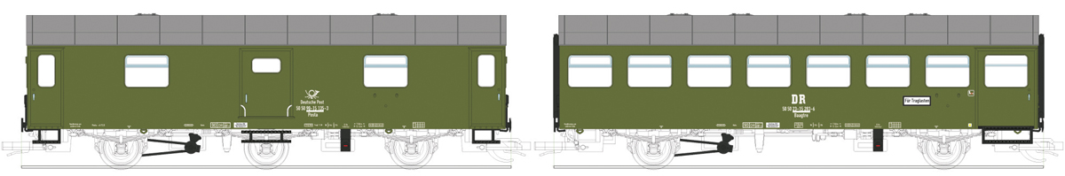| set dvou rekonstrovaných vozů, 1x poštovní, 1x osobní |