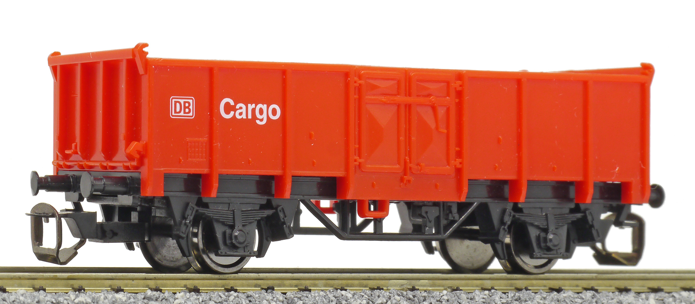 otevřený nákladní vůz červený v barvě plastu „DB Cargo“