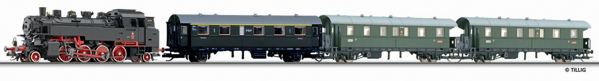 | set parní lokomotivy TKt3 a tří osobních vozů |