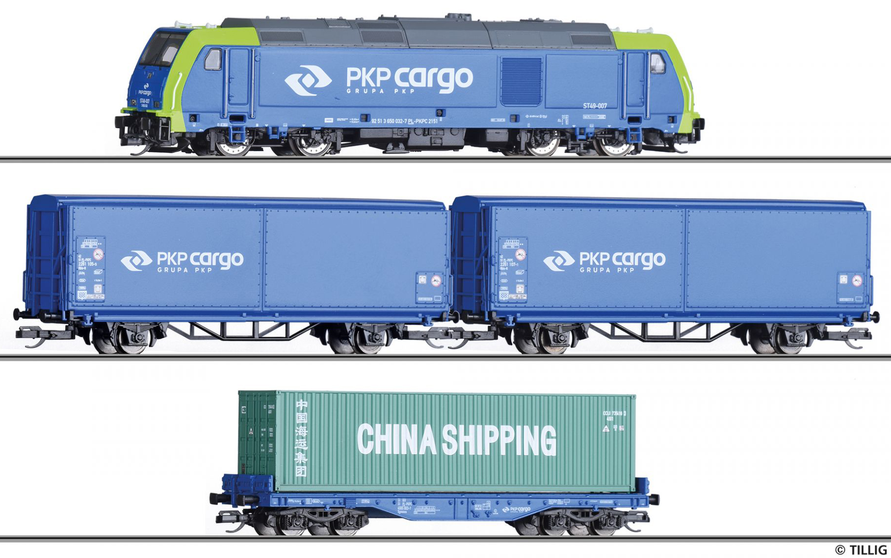 | set dieselové lokomotivy a tří nákladních vozů |