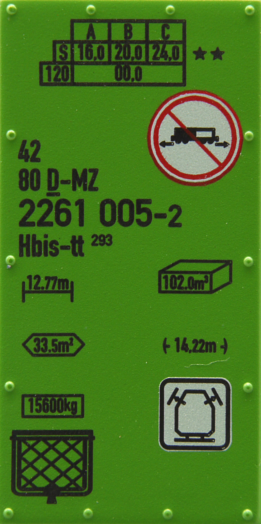 | • 42 80 2261 005-2 | → | H - krytý vůz zvláštní stavby |